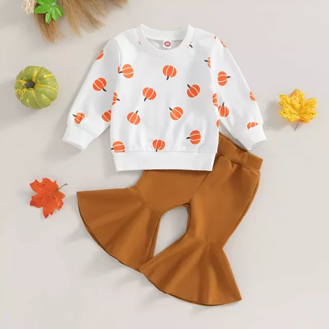 Whether she’s dressing up for trick-or-treating, school parties, or family photos, this pumpkin print sweatshirt and flare pants set is the go-to outfit for all festive occasions. It’s easy to mix and match with her favorite sneakers or boots, making it a versatile must-have for the fall season.