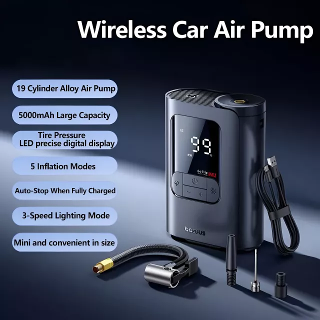 Don’t let low tire pressure slow you down. The Wireless Digital Car Air Pump gives you the confidence to drive farther and safer, knowing your tires are always perfectly inflated. From daily commutes to long road trips, it’s the smart, compact, and dependable choice for every driver. Keep it in your car, and stay ready for any adventure.
